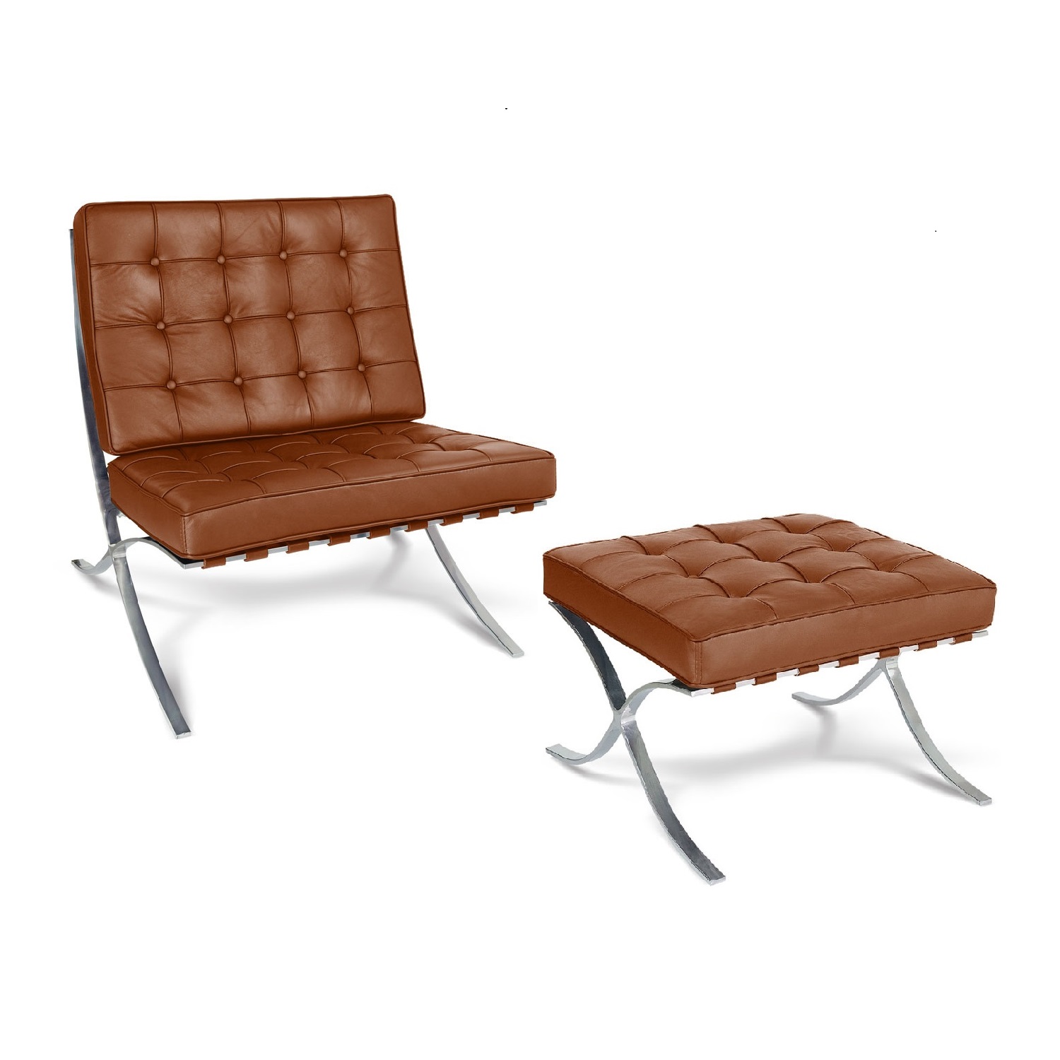バルセロナチェアのフレームは、滑らかな曲線と直線が交差する洗練された構造が特徴です。耐久性に優れたスチールフレームを採用し、安定感のある座り心地を支える強度を確保しています。象徴的なクロスレッグデザインは視覚的な美しさだけでなく、長年使ってもたわみにくい優れた耐久性を実現しています。